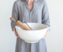 Simple, functional, and timeless, this white ceramic mixing bowl is a kitchen essential. Its wide, rounded shape makes it ideal for mixing batters, tossing salads, or prepping ingredients, while the small spout allows for easy pouring with minimal mess.
