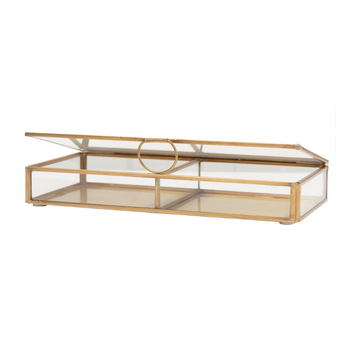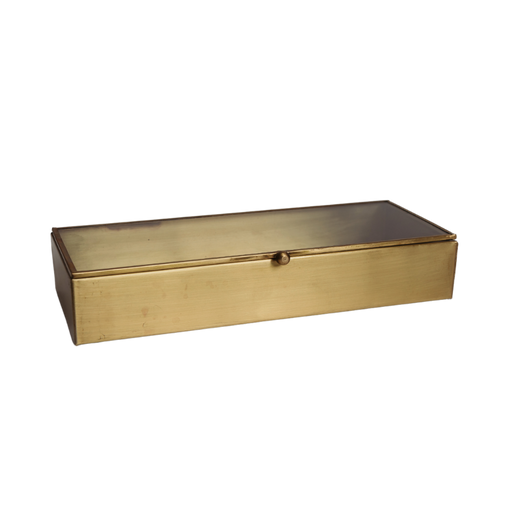 A beautiful blend of form and function, this rectangular brass and glass box brings refined elegance to any space. Crafted with a sleek metal frame...