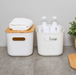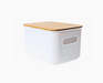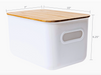 Keep your space organized and stylish with these versatile storage bins. The warm white color complements any room, while the integrated handles make it easy to move them from place to place. The natural bamboo lids add a touch of charm, making these bins perfect for open shelving and display.
