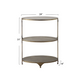 An exquisite fusion of form and function, this three-tier metal side table is designed to bring quiet sophistication to any interior. With its gracefully curved oval shelves and slender frame, the piece embodies refined minimalism while offering generous versatility. Crafted from solid iron with a hand-applied antiqued finish, each tier showcases subtle texture and depth, adding character to its sleek silhouette.