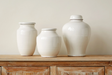 Perfect for layering on shelves, consoles, or tabletops, this versatile piece can be styled on its own or used as a vessel for branches or florals. The neutral white glaze allows it to blend seamlessly with your existing decor while still making an elegant statement.